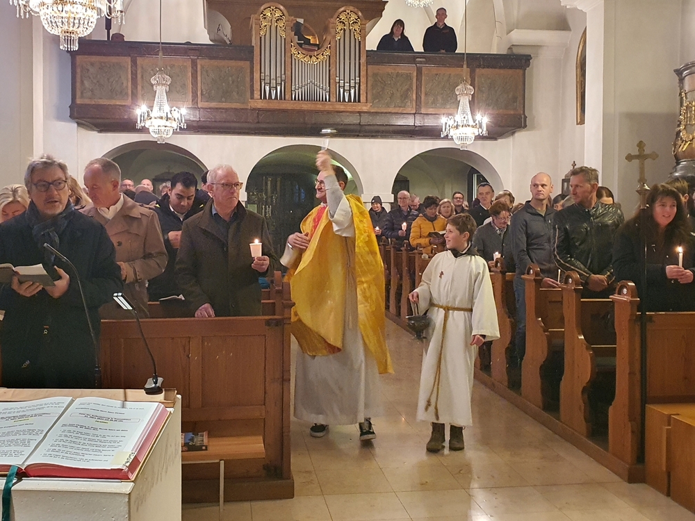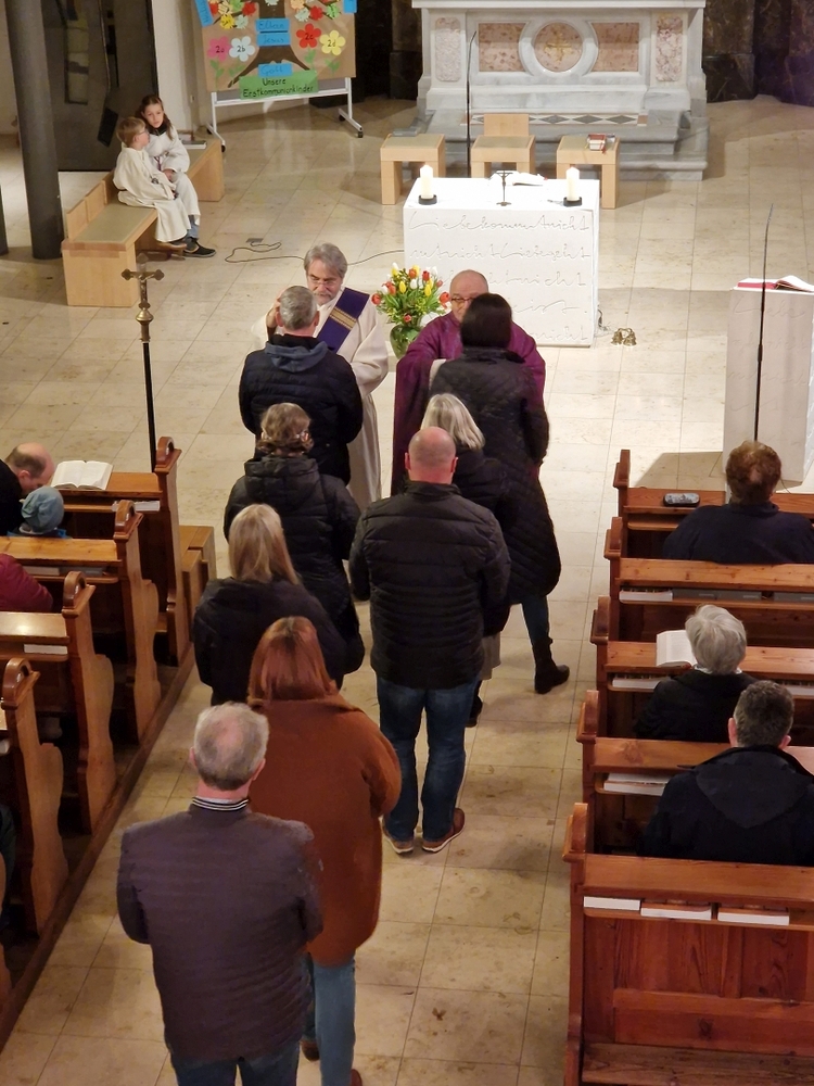 Beim Aschermittwoch-Gottesdienst mit Vikar Norbert Glaser und Diakon Michi Zepf erhielten die vielen Gläubigen, die gekommen waren, das Aschenkreuz auf die Stirn gezeichnet. Es ist ein starkes sichtbares Zeichen, das „hautnah“ an die Vergänglichkeit erinnert und uns auffordert, im Einklang mit dem Evangelium zu leben.