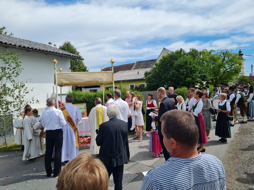 Ein herzliches DANKE allen, die liturgisch mitgewirkt haben, dass das Fronleichnamsfest so festlich und gemeinschaftlich gefeiert werden konnte. Danke auch den Vereinen - der MUZ, der FF und dem ÖKB - für ihr Dasein und Mitfeiern!