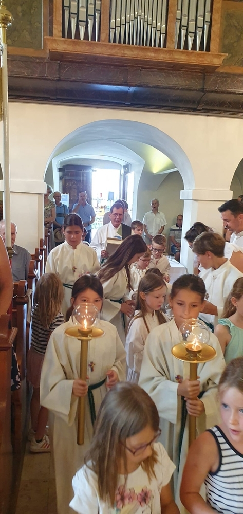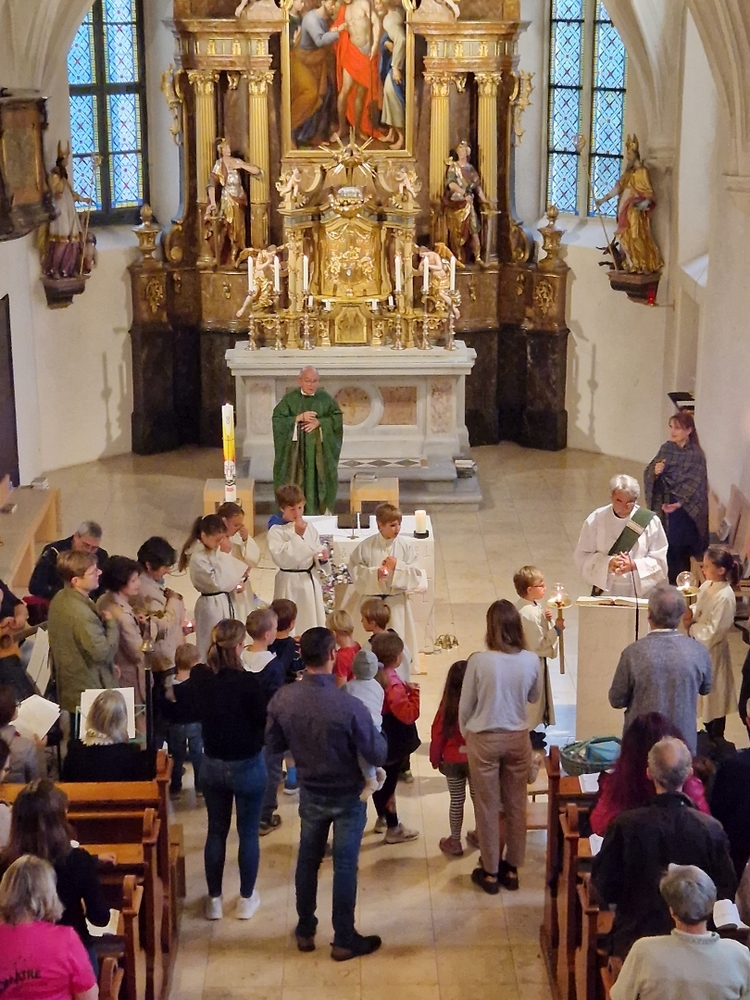 Um 10 Uhr schließlich feierten die Kinder in der Gemeinschaft der Pfarre mit Vikar Norbert Glaser und Diakon Michi Zepf die heilige Messe, gestalteten mit Texten die Feier mit und sangen begeistert ihre schönen Lieder. Ein Danke besonders an Frau Religionslehrerin Helga Krenn und das tolle Musikteam!