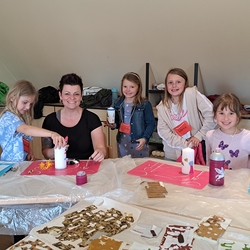 • das eigene Feierheft gestalten, eine Brosche aus Fimo und den Kirchenschmuck basteln
