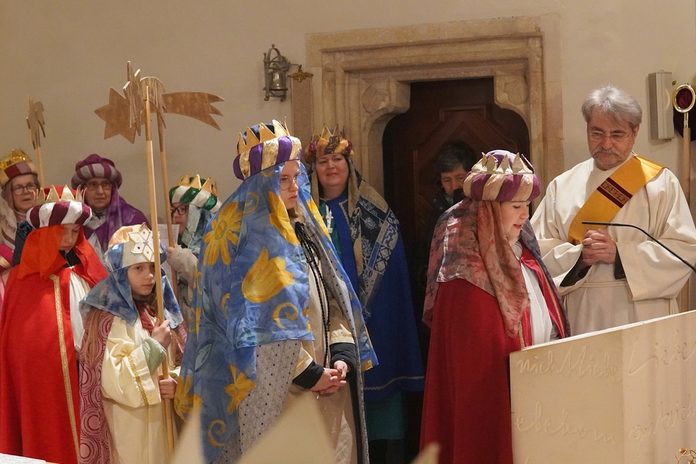 Noch einmal schlüpften kleine und große Leute in königliche Gewänder, um beim Gottesdienst am „Dreikönigstag“ als Königinnen und Könige aufzutreten.