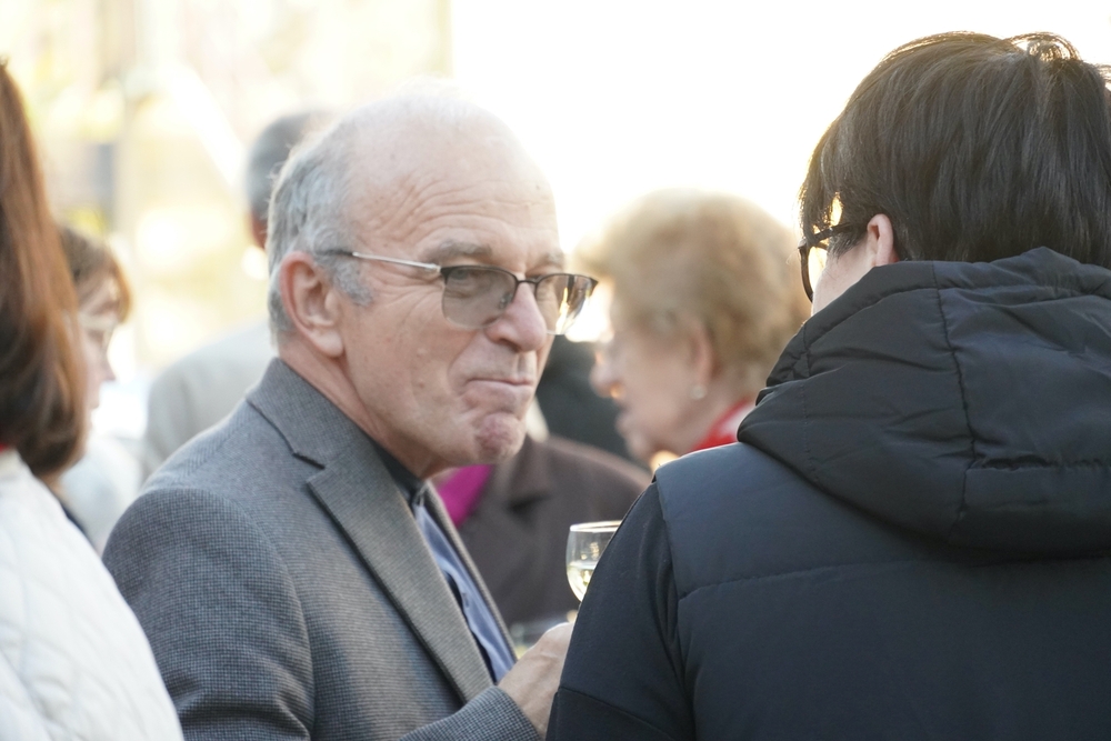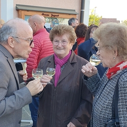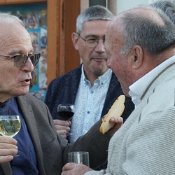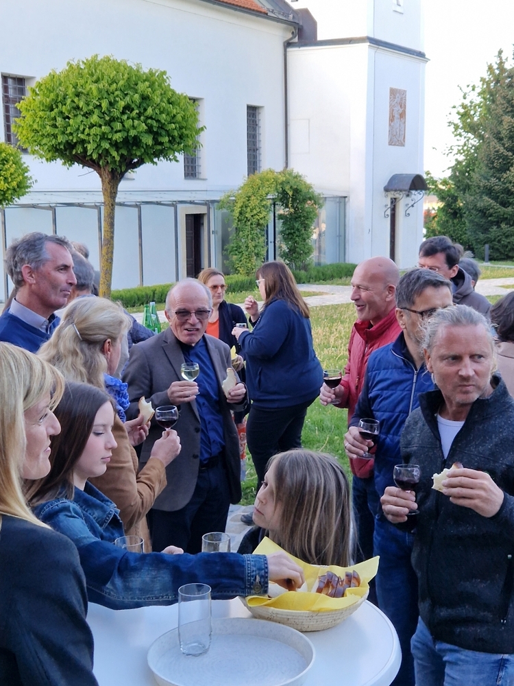 Bei der anschließenden Agape mit Brot und Wein auf dem Kirchplatz gab es dann für alle die Gelegenheit, persönlich mit Vikar Norbert Glaser auf seinen Geburtstag anzustoßen.