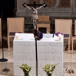 Zum Zeichen der Verehrung brachten die Gläubigen Narzissen zum enthüllten Kreuz. Das zarte Gelb der Blumen ist ein Hoffnungsschimmer. Erlösung ist in Sicht, bald bricht der Ostermorgen an!