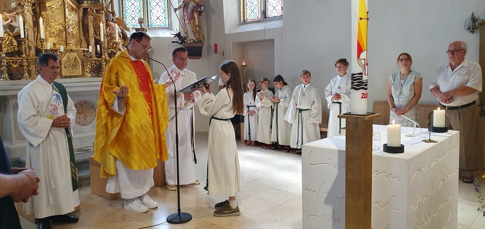 Einen bunten Familiengottesdienst, zu dem speziell die Taufkinder des letzten Jahres eingeladen waren, feierten Vikar Norbert Glaser und Diakon Michi Zepf mit Klein und Groß am 16. Juni in unserer Kirche.