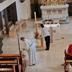 Die Auferstehungsfeier zelebrierten Vikar Gerhard Hatzmann und Diakon Michi Zepf, zusammen mit den Minis, den Lektorinnen und Lektoren, mit Kantor und Kantorin, der Musikgruppe und allen Gläubigen.