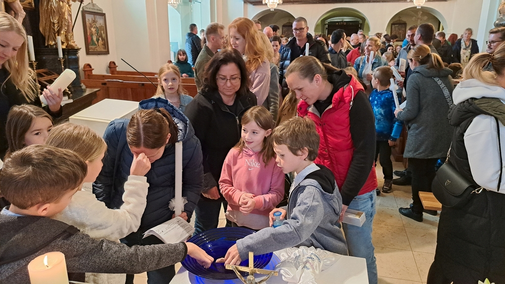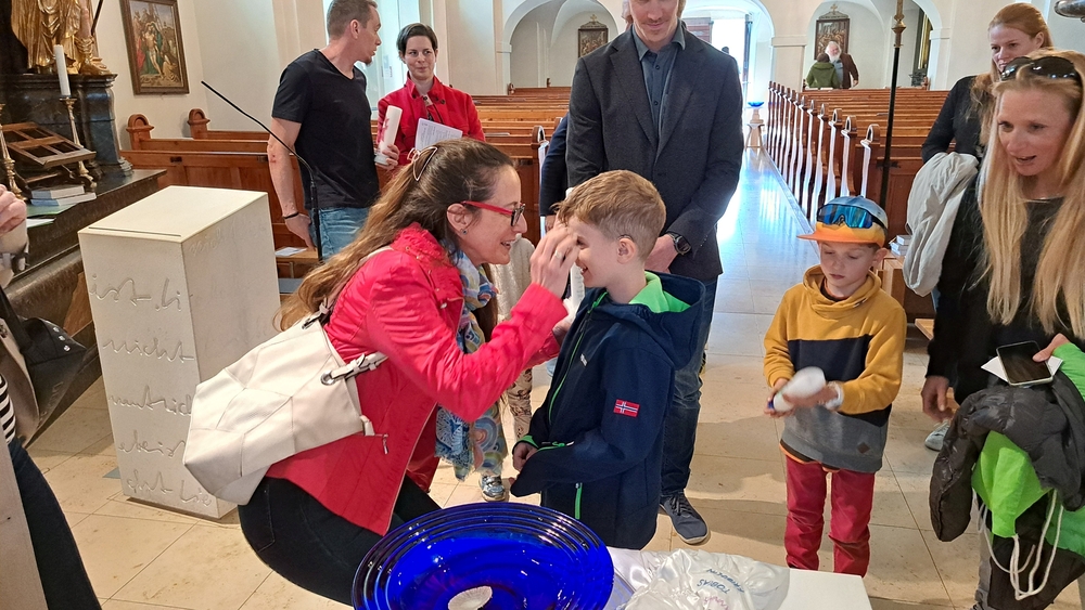Im Anschluss des letzten Vorbereitungsworkshops in der Pfarre feierten die diesjährigen Erstkommunionkinder gemeinsam mit ihren Familien sowie Taufpatinnen und Taufpaten das Tauferneuerungsfest.