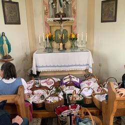 Ein Fixpunkt im Kirchenjahr ist für viele Christinnen und Christen die Osterspeisensegnung. Auch in unserer Pfarre kommen immer viele Menschen zu den einzelnen Stationen, so auch heuer wieder am Karsamstag.