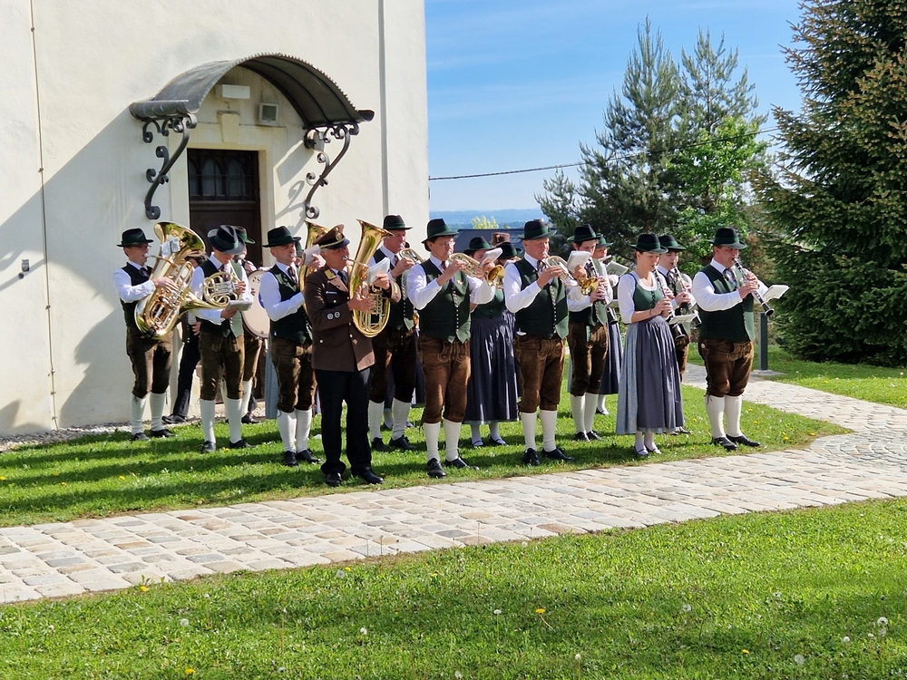 Musikalisch gestaltete – schon traditionell - die Marktmusik Unterpremstätten-Zettling die heilige Messe, den Ein- und Auszug sowie die anschließende Kranzniederlegung beim Kriegerdenkmal.