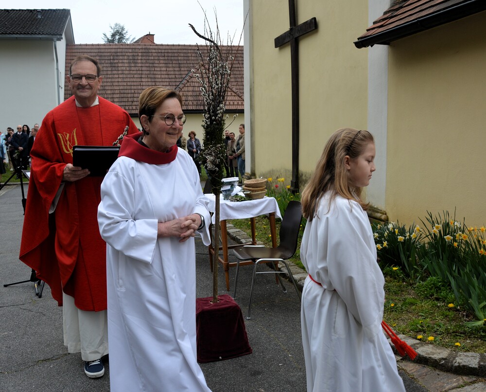 Palmweihe mit Vikar Gerhard Hatzmann am Kirchplatz