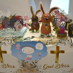"Kommt herein, kommt herein. Der Himmel soll heut offen sein, für alle Menschen Groß und Klein, kommt alle herein!“ So singen die Kinder des TOKI (Pfarrkindergarten Tobelbad) zu Beginn des Gottesdienstes am Palmsonntag. Viele haben das gehört und sind gekommen. Voran die Jungscharkinder mit ihrem Palmbuschenkreuz, das sie in der Jungscharstunde gebunden haben. Aus Voitsberg war eine große Wandergruppe da und natürlich viele aus dem Seelsorgeraum. Vikar Gerhard Hatzmann erreicht alle, schon beim Kreuzzeichen hat er die Aufmerksamkeit der Kleinen und Großen, wenn er spricht: "Ich denke an dich, ich erzähle von dir, ich spüre du bist bei mir." Beim Evangelium berichtet er von Jesus, wie er mit dem Esel in Jerusalem einzieht, wie ein König – aber wie ein König der Liebe für uns Menschen. Peter Preitler mit seiner Gruppe hat die Messe musikalisch gestaltet und das TOKI Team unterstützt. Im Anschluss gab es eine Agape und den Ostermarkt des Generationentreffs, von Alexandra Deutsch liebevoll vorbereitet. DANKE an alle für dieses segensreiche Fest. Margret Hofmann, Pastorales Pfarrteam Liturgie und Öffentlichkeitsarbeit