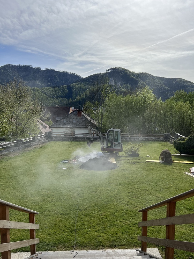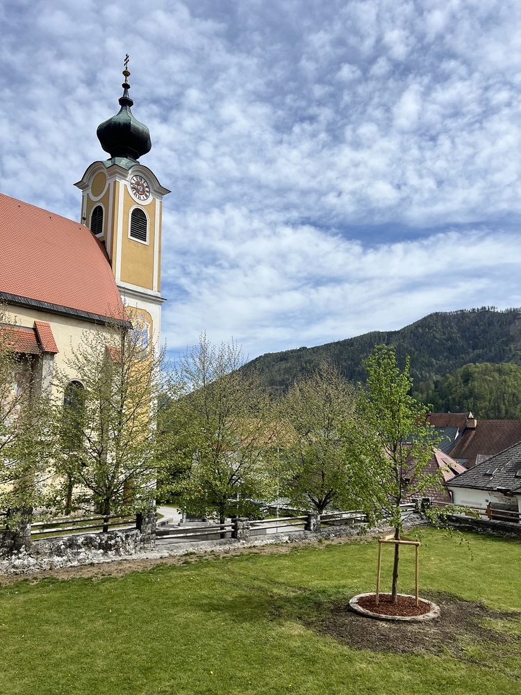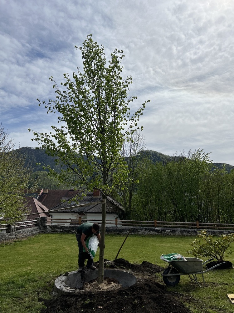 Die Firma Leitner hat mitten in unseren Pfarrgarten eine Linde gesetzt.