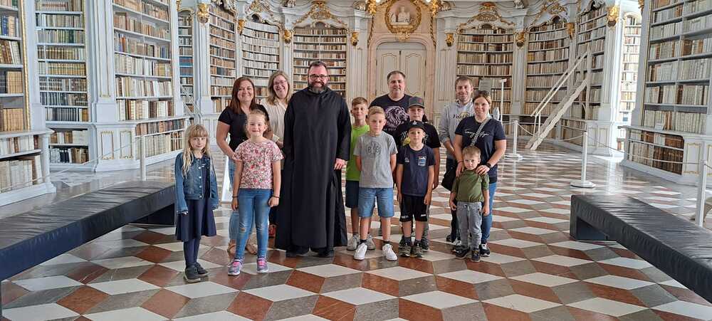 P. Ulrich zeigte Ihnen die größte Stiftsbibliothek der Welt. Wir schauten uns 800 Jahre alte Bücher an....