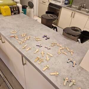 Um die Verbundenheit zwischen Firmling und Pate auszudrücken, wurden zudem Kreuze als Anstecker gestaltet, die bei der Firmung getragen werden können. Hierbei durften sich die Firmlinge kreativ ausleben.